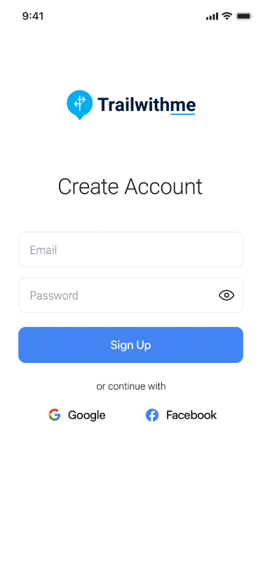 Sign up using your email or social login to unlock trail discovery, planning tools, and community features. Your account helps you save hikes, track progress, and personalize your outdoor experience across devices.